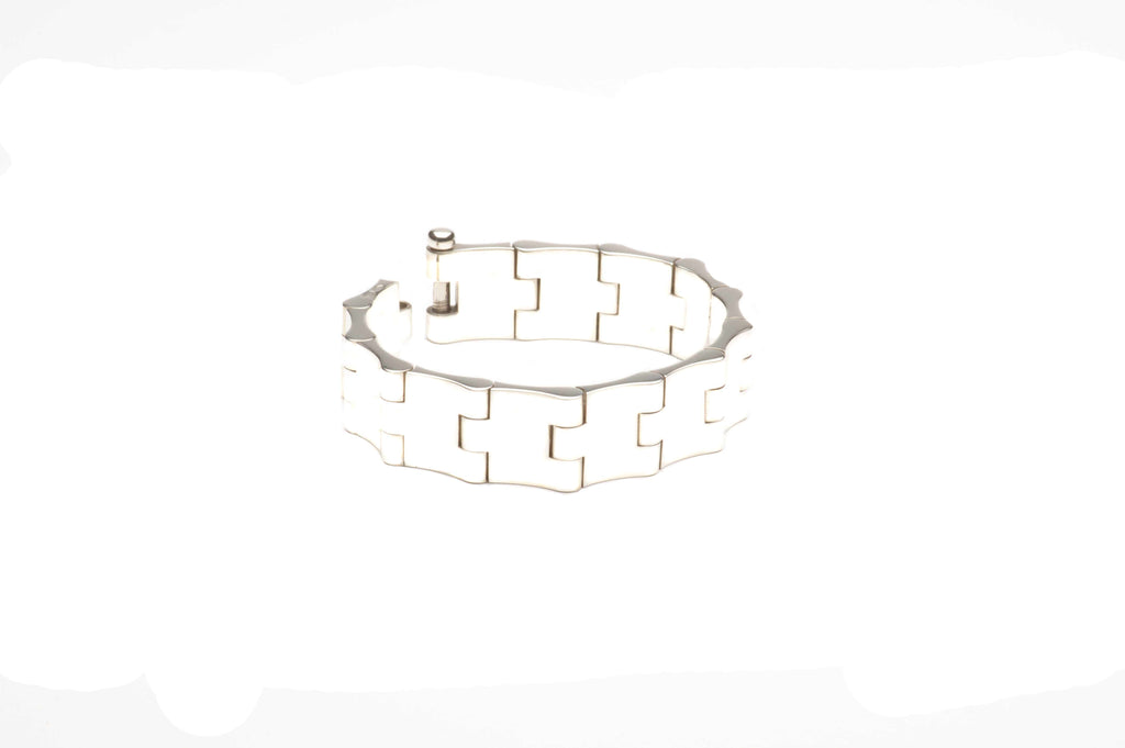 Sterling silver links, concealed clasp. Rectangular links, beautifully connected. Highly polished or satin matte finish.