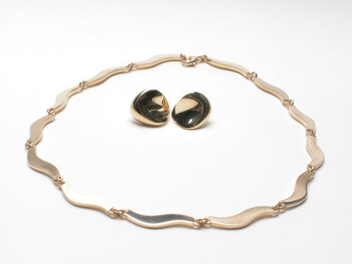 Eighteen karat gold, satin finish, necklace and earrings PETAL.