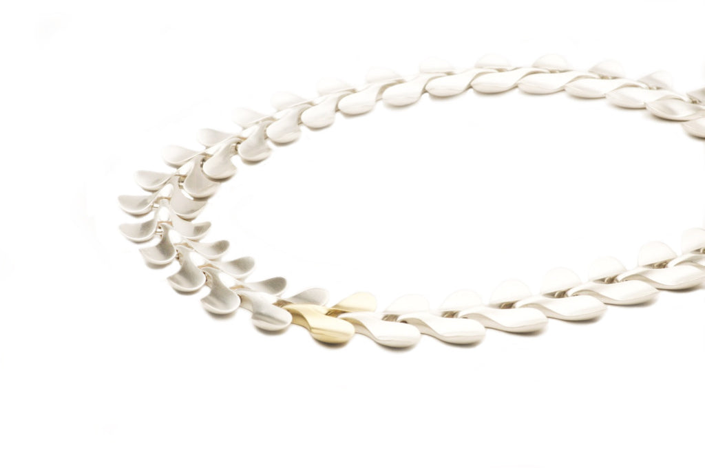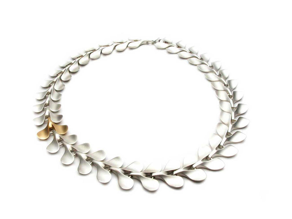 THE LEAF necklace in sterling silver with one element in eighteen karat gold.