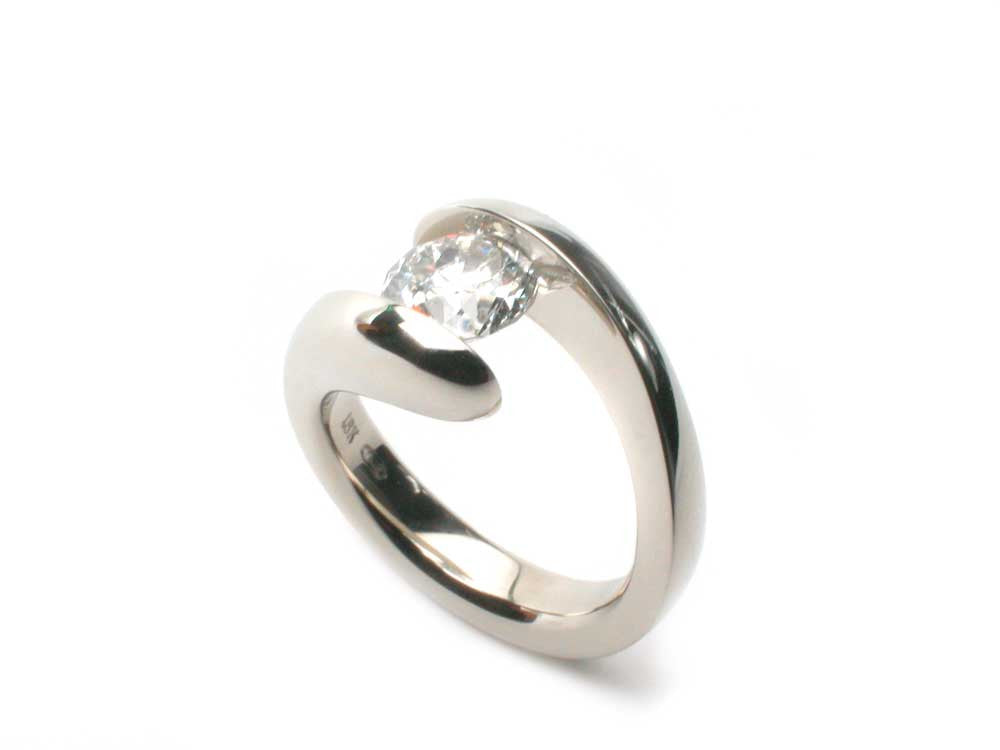 Custom-made Pressure-set Natural Diamond in the eighteen karat White Gold tension ring.